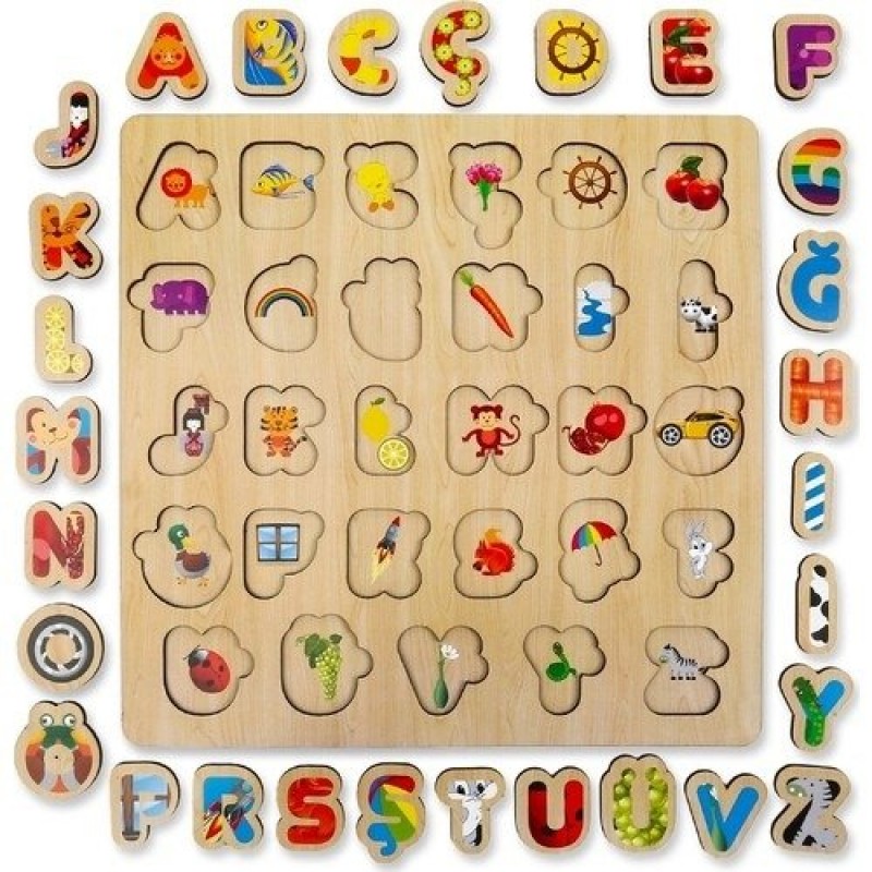Minikler için özel tasarlanmış bu sevimli resimli puzzle ile çocuklar hem eğlenecek hem de harfleri öğrenebilecekler! Büyük parçalar sayesinde çocukların bir araya getirmesi daha rahattır. Ürünlerin kesimleri, çizimleri ve renkleri özel olarak tasarlanmıştır.